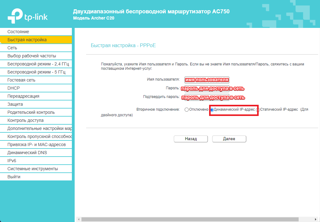 • Слева в столбце нажимаем «Быстрая настройка, PPPoE»