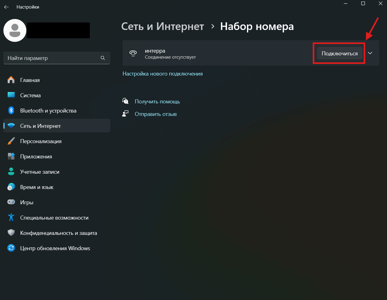 9. Созданное подключение появится в наборе номера с именем, указанным на 7 шаге. Чтобы его запустить нажмите «Подключиться».