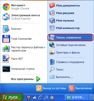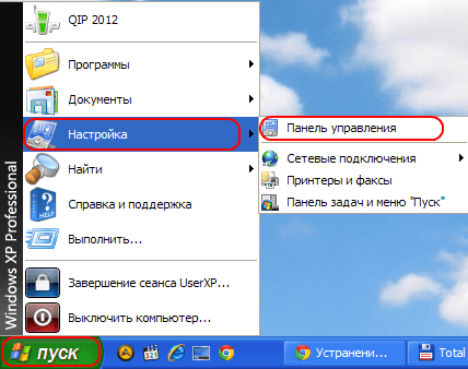 либо «Пуск» → «Настройка» → «Панель управления»