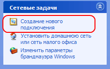 3. В верхнем левом углу строка «Создание нового подключения»