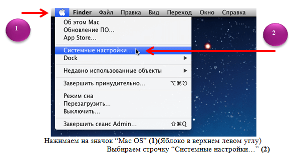 1. Нажимаем на значок «macOS» (яблоко в верхнем левом углу)