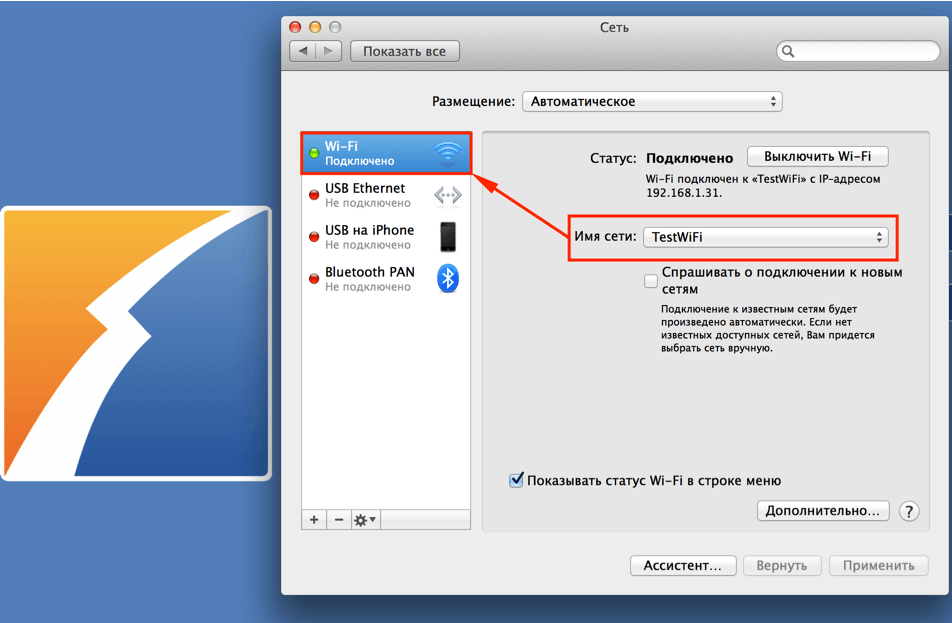 Если «Показывать статус Wi-Fi в строке меню» не активно, то нажимаем на саму надпись левой кнопкой мыши.