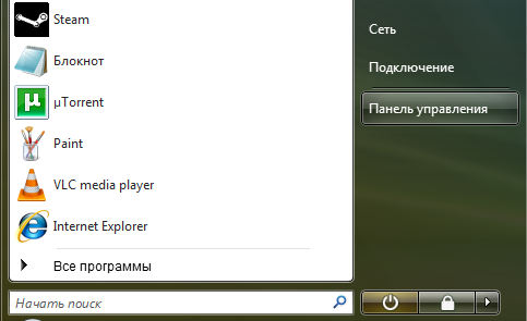 1. В меню «Пуск» выберите пункт «Панель управления»