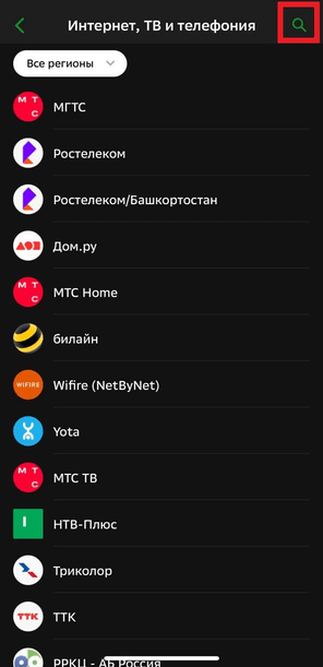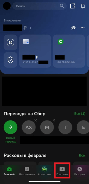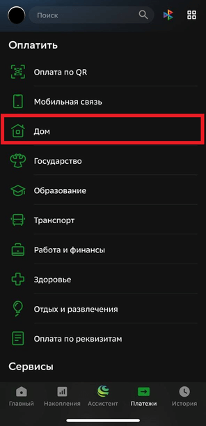Выберите вариант «Платежи» или «Платежи и переводы»