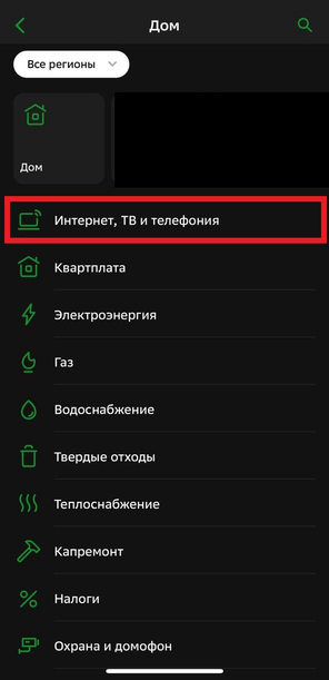 3. Нажмите строку «Интернет, ТВ и телефония» или «Интернет»
