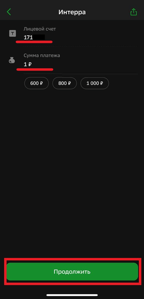 Сумма для оплаты может подставляться автоматически в зависимости от суммы тарифа или долга.