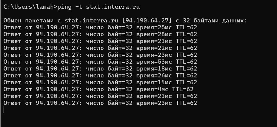 В нашем случае необходимо ввести: ping stat.interra.ru