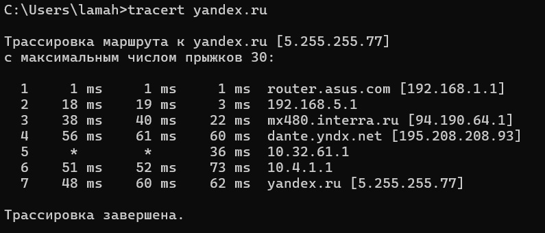 Трассировка маршрута может показать скорость прохождения пакетов между маршрутизаторами, которые соединяют ПК, с которого идут запросы и конечный сервер.