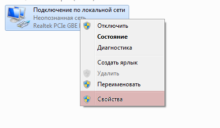 2. В открывшемся окне ищем значок с названием «подключение по локальной сети», в OC Windows 8 и выше, он может называться «Ethernet». Щелкаем по нему правой кнопкой мыши и выбираем свойства.