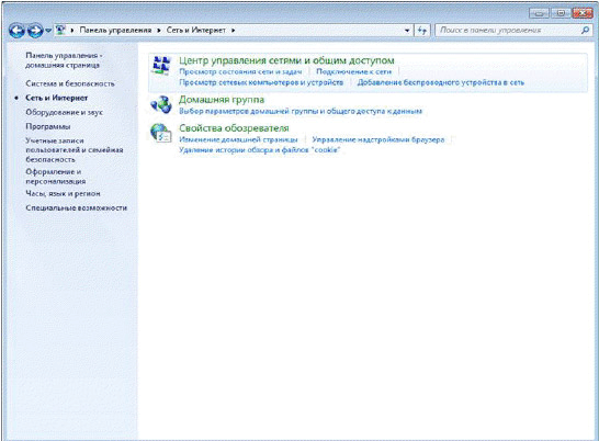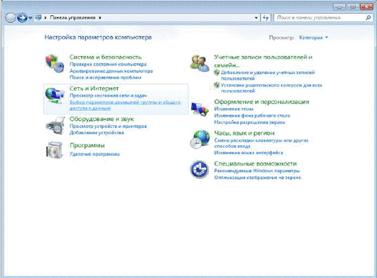 2. На экране появится окно «Панель управления». В окне необходимо дважды щелкнуть по значку «Сеть и Интернет».