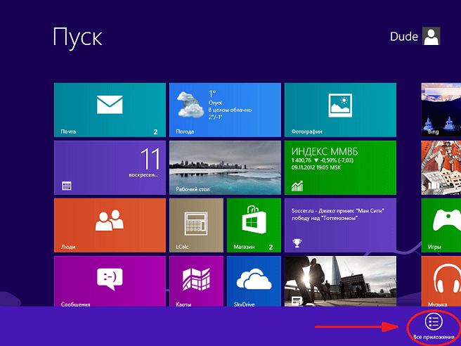 1.1. Нажать правой кнопкой мыши в меню «Пуск» и открывшемся снизу меню выбрать «Все приложения»