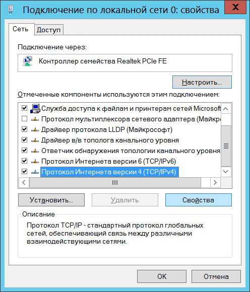 4. Во вкладке «Общие» выделите пункт «Протокол Интернета версии 4 (TCP/IPv4)», и нажмите кнопку «Свойства».