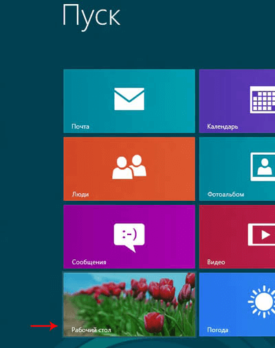 1.1. Левой кнопкой мыши щёлкните по плитке «Рабочий стол»: